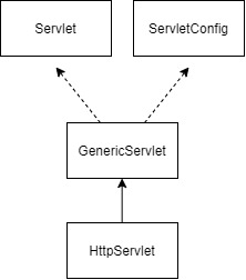 - 상위 두 인터페이스 implements 한 클래스임. 일반적 서블릿 기능 구현